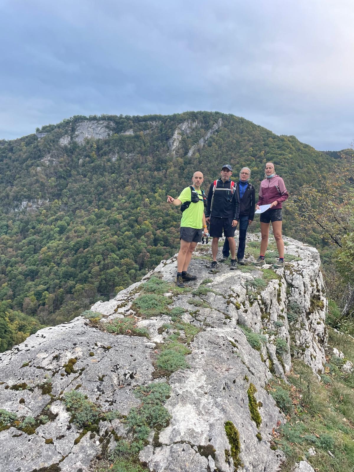 Et ensuite pour se réchauffer on attaque un parcours plus technique, qui emmènera tout le groupe dans des passages aériens, des pierriers, des descentes raides, des grottes, on a failli finir par sauter dans la Loue en toute sécurité grâce à notre sauveteuse de choc.