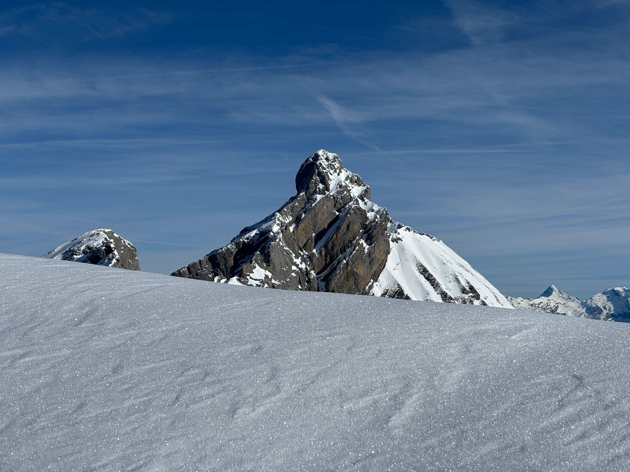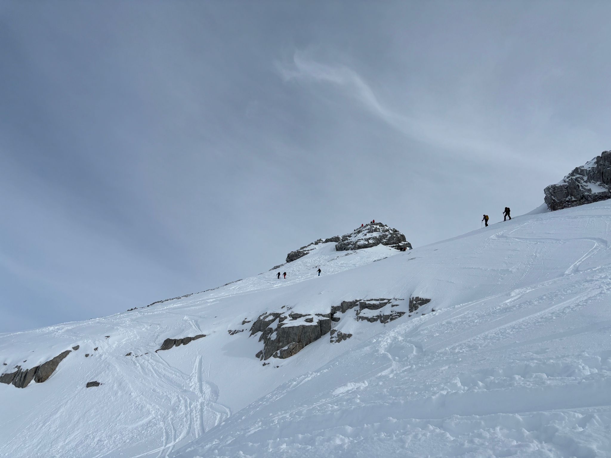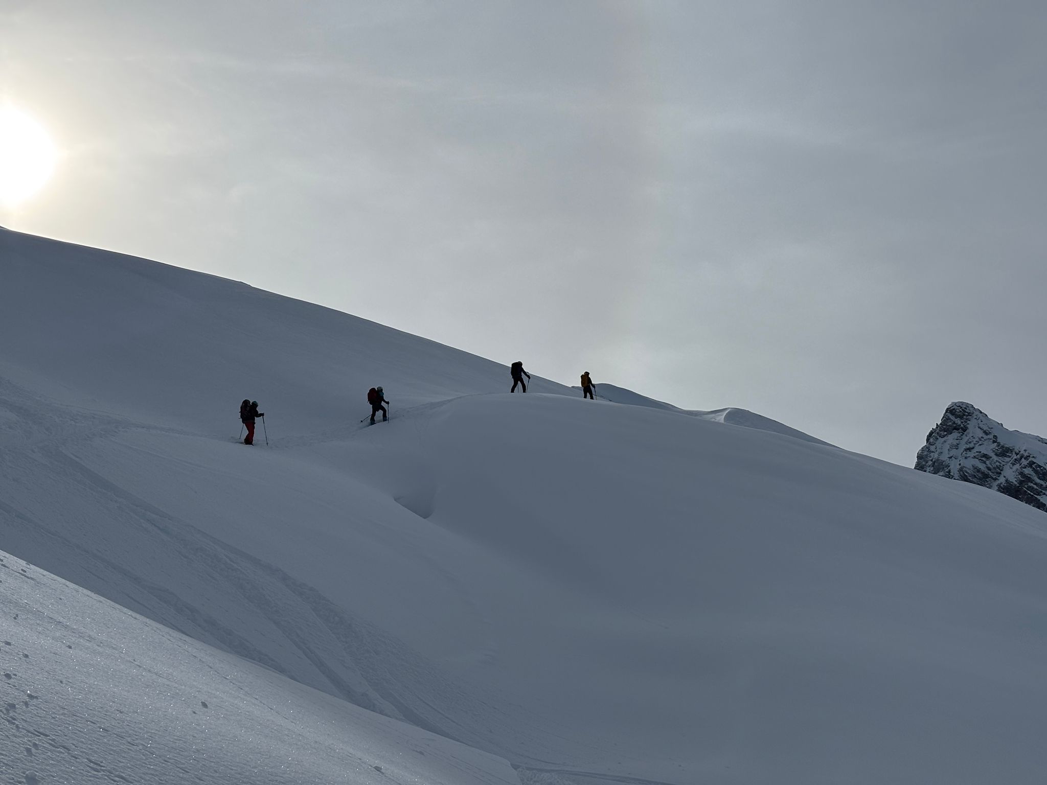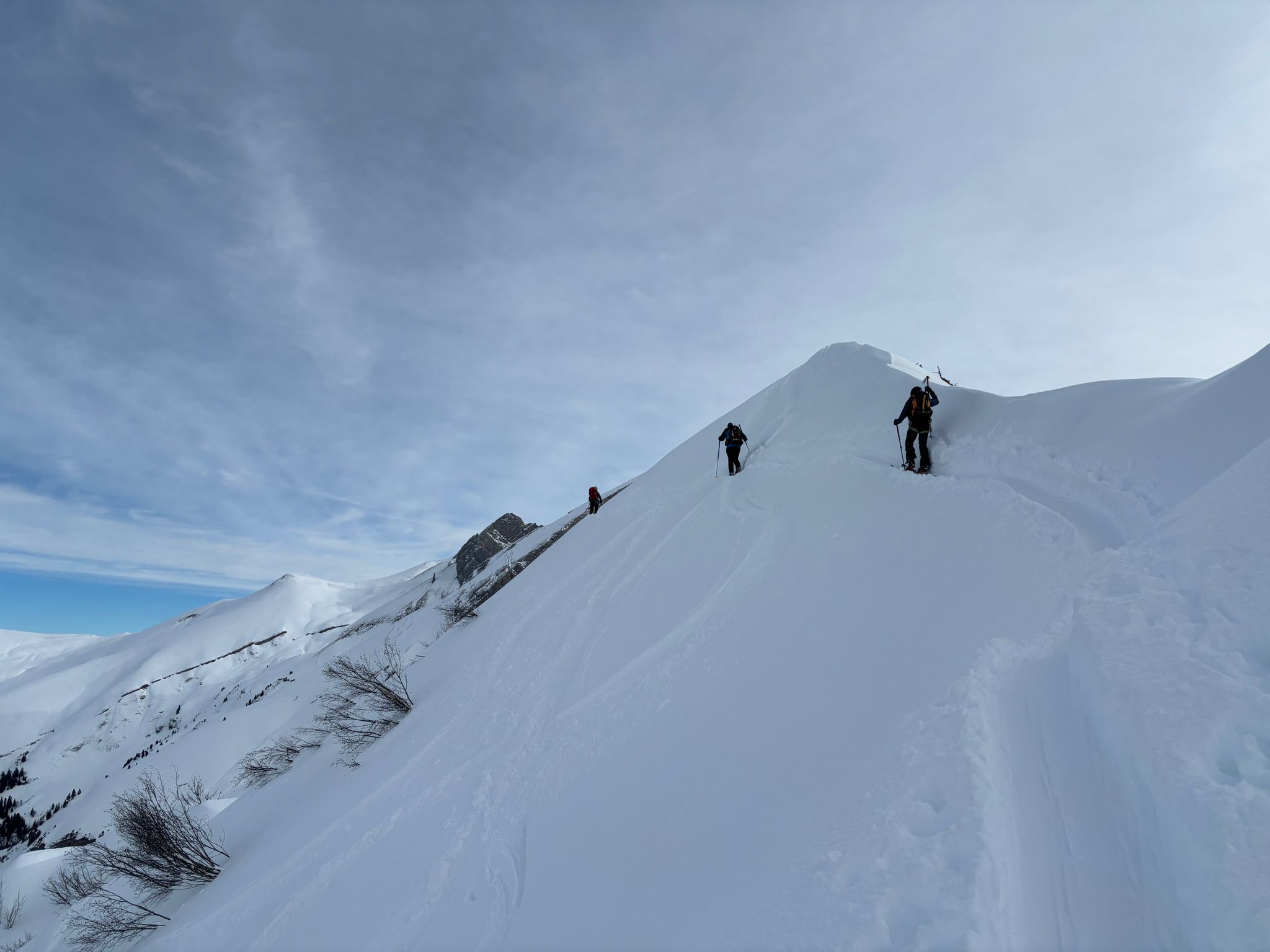J1 : montée au refuge depuis le chinaillon avec les remontées mécaniques, un forfait randonneur est prévu sur 2 jours (aller et retour, bien pratique). Un beau spectacle en découvrant la chaine des Aravis au fur et à mesure de notre montée. Dépôt des affaires au refuge et montée à la pointe des carmélites. La neige étant excellente, nous descendons plus bas que le refuge pour profiter de poudreuse !