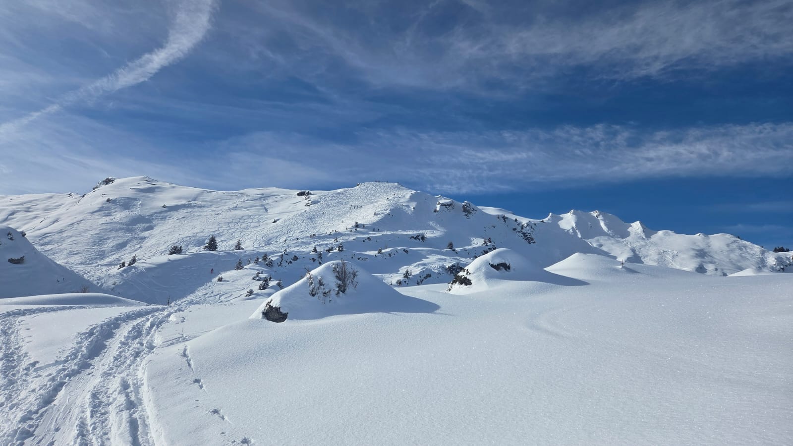 Une neige au top, 20-30cm de fraîche, un soleil radieux, une température idéale et un super groupe.