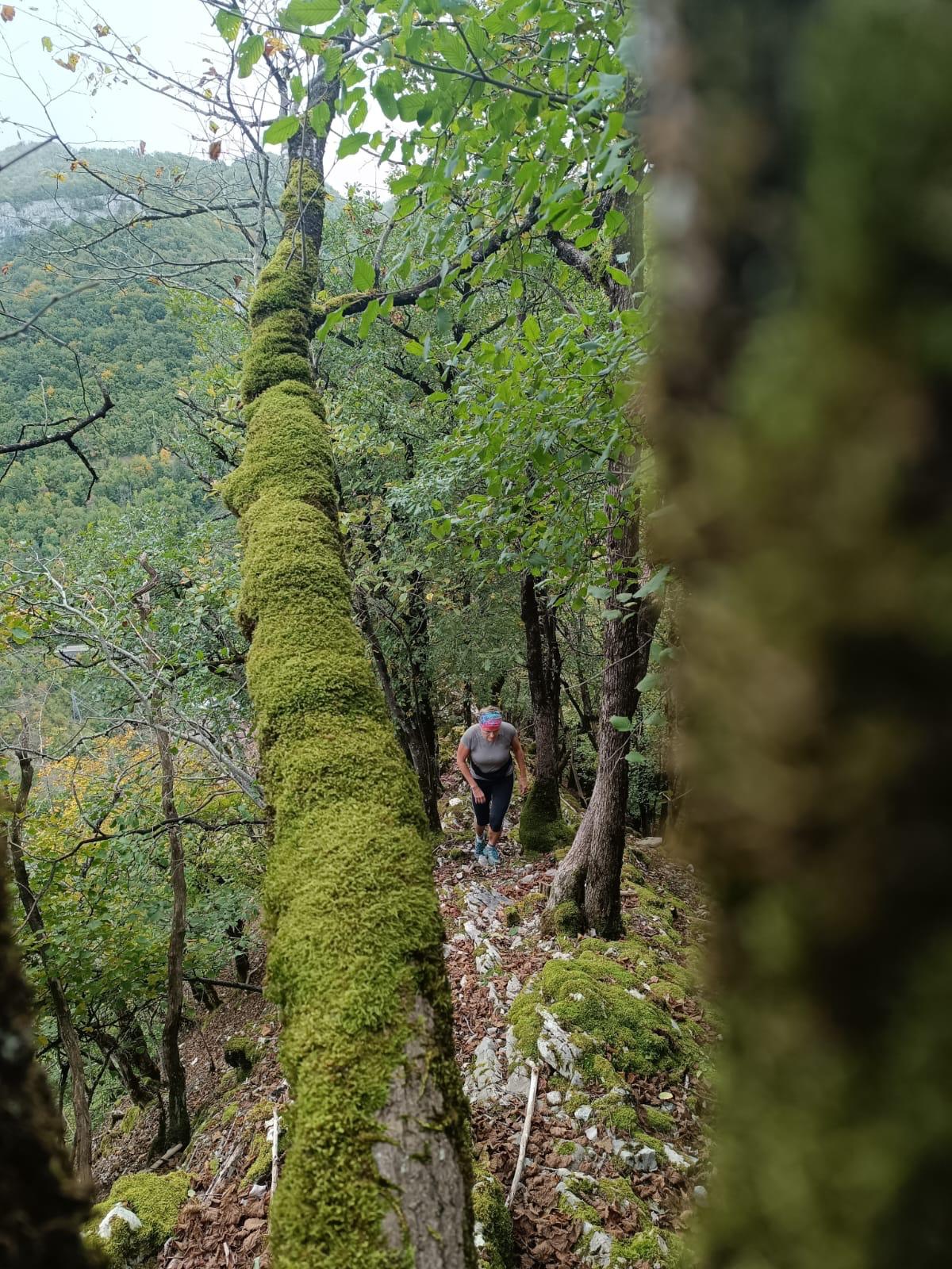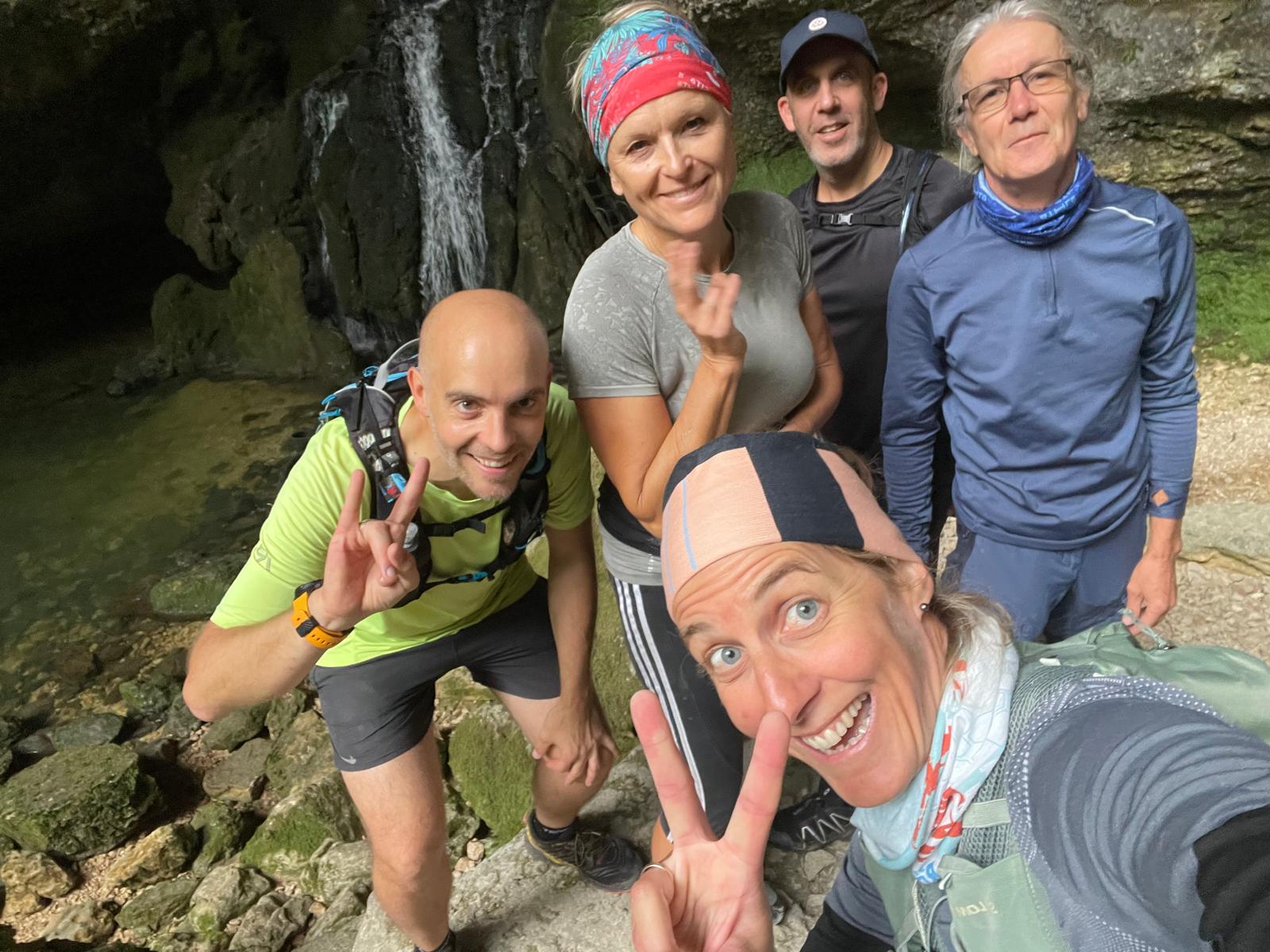 Et ensuite pour se réchauffer on attaque un parcours plus technique, qui emmènera tout le groupe dans des passages aériens, des pierriers, des descentes raides, des grottes, on a failli finir par sauter dans la Loue en toute sécurité grâce à notre sauveteuse de choc.