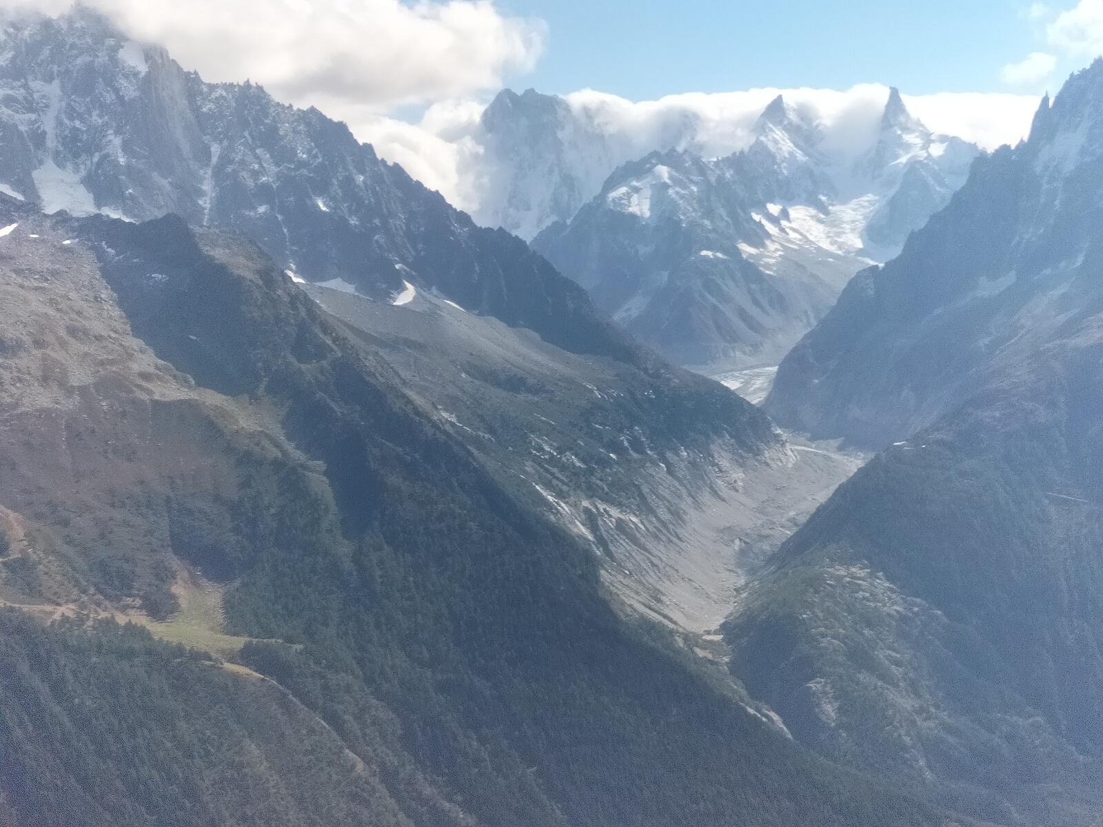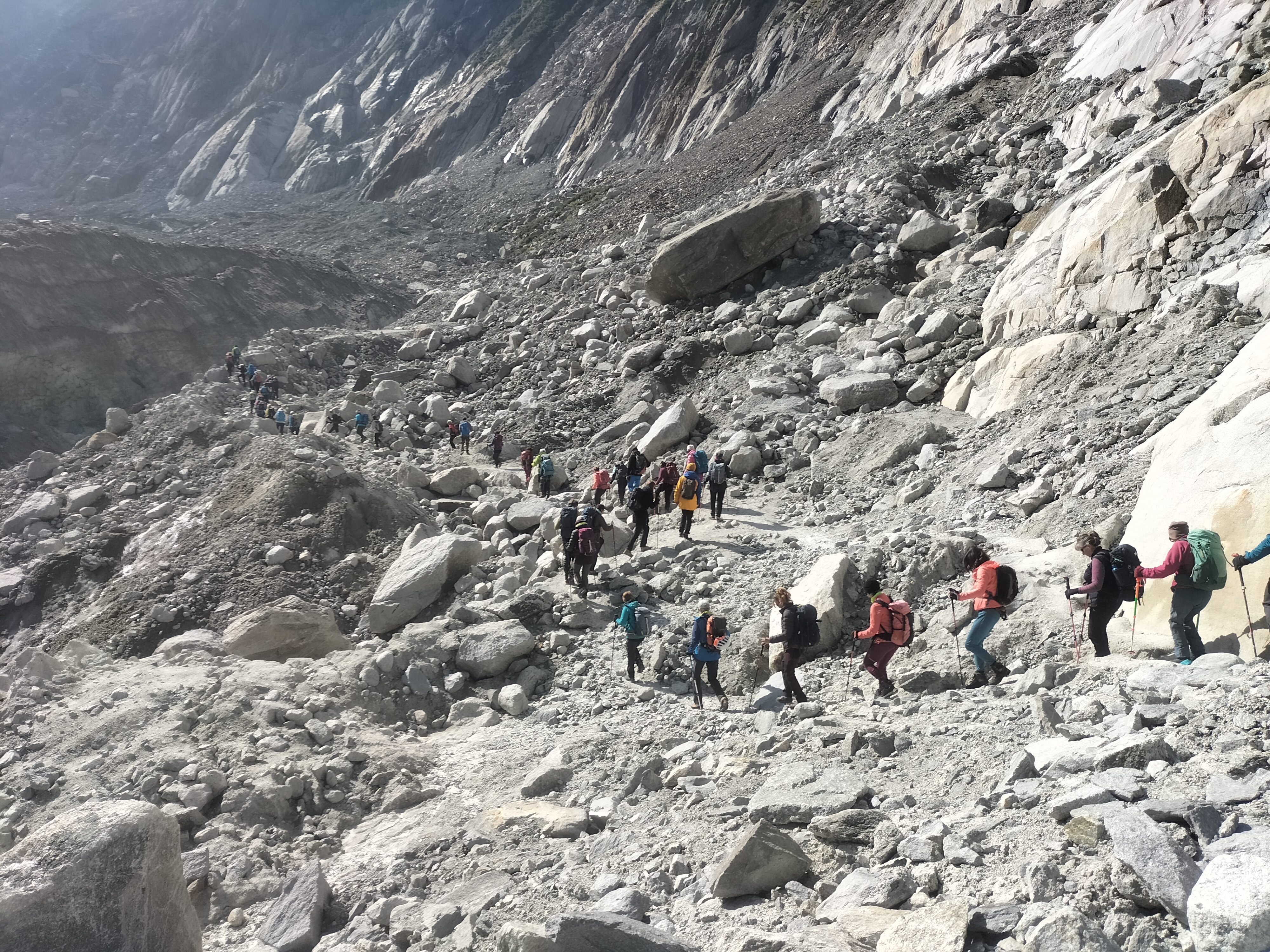 Le samedi a permis de randonner en balcon face au massif, en pouvant observer le recul de tous les glaciers (du tour, Argentière, mer de glace, les bossons). Journée agréable, sous un beau soleil d'automne, riche en partages.