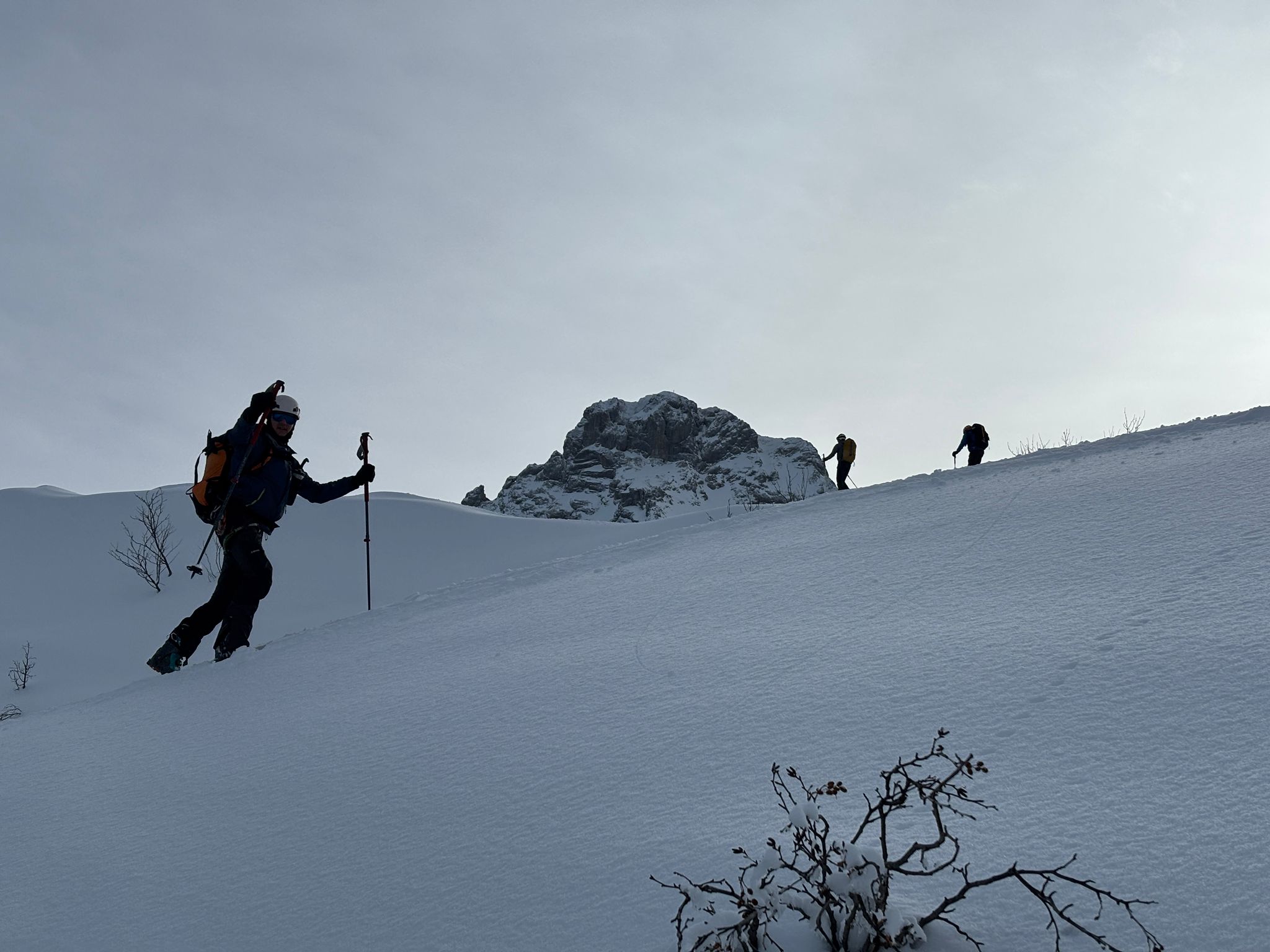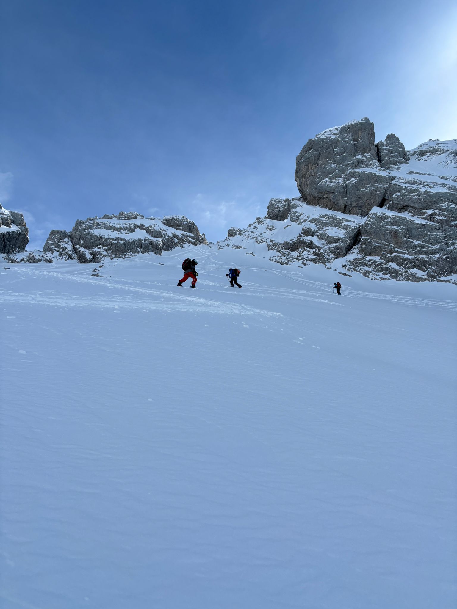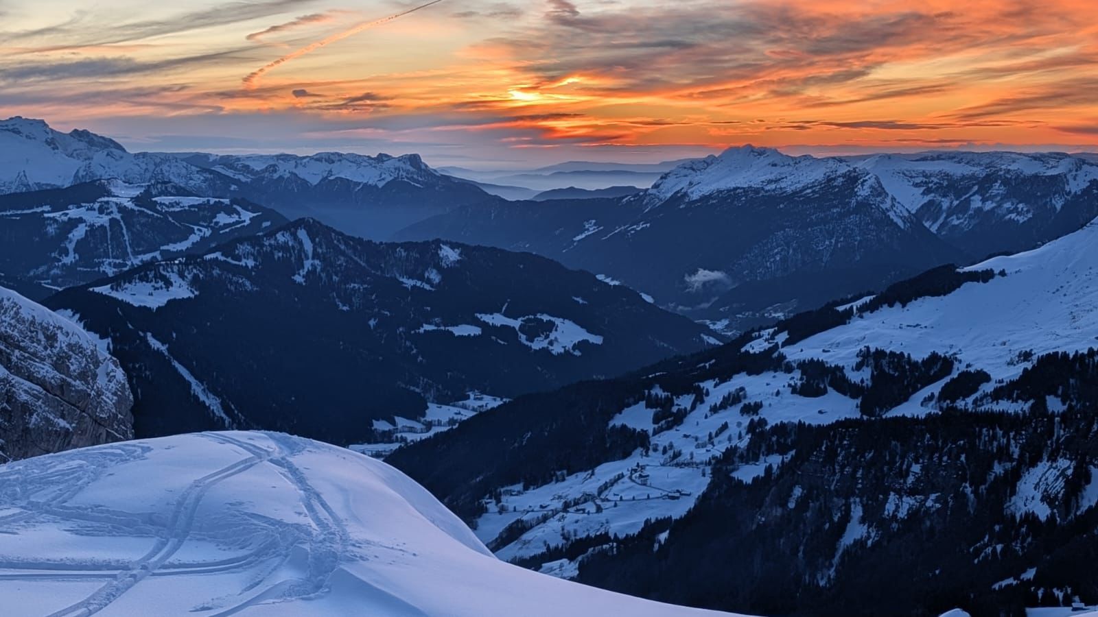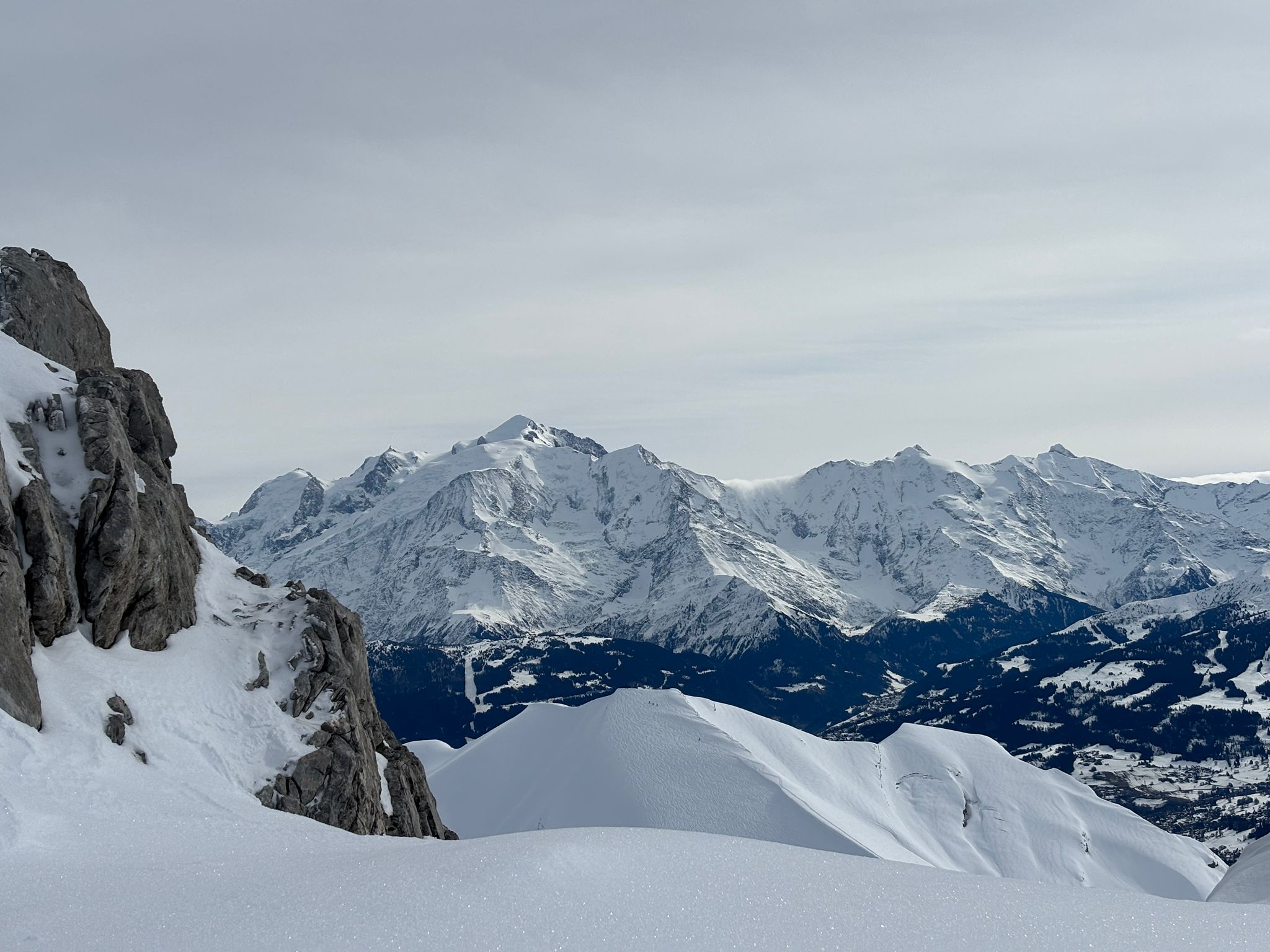 J1 : montée au refuge depuis le chinaillon avec les remontées mécaniques, un forfait randonneur est prévu sur 2 jours (aller et retour, bien pratique). Un beau spectacle en découvrant la chaine des Aravis au fur et à mesure de notre montée. Dépôt des affaires au refuge et montée à la pointe des carmélites. La neige étant excellente, nous descendons plus bas que le refuge pour profiter de poudreuse !