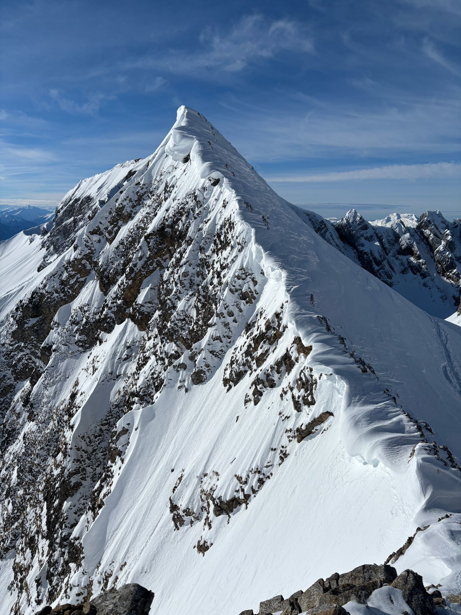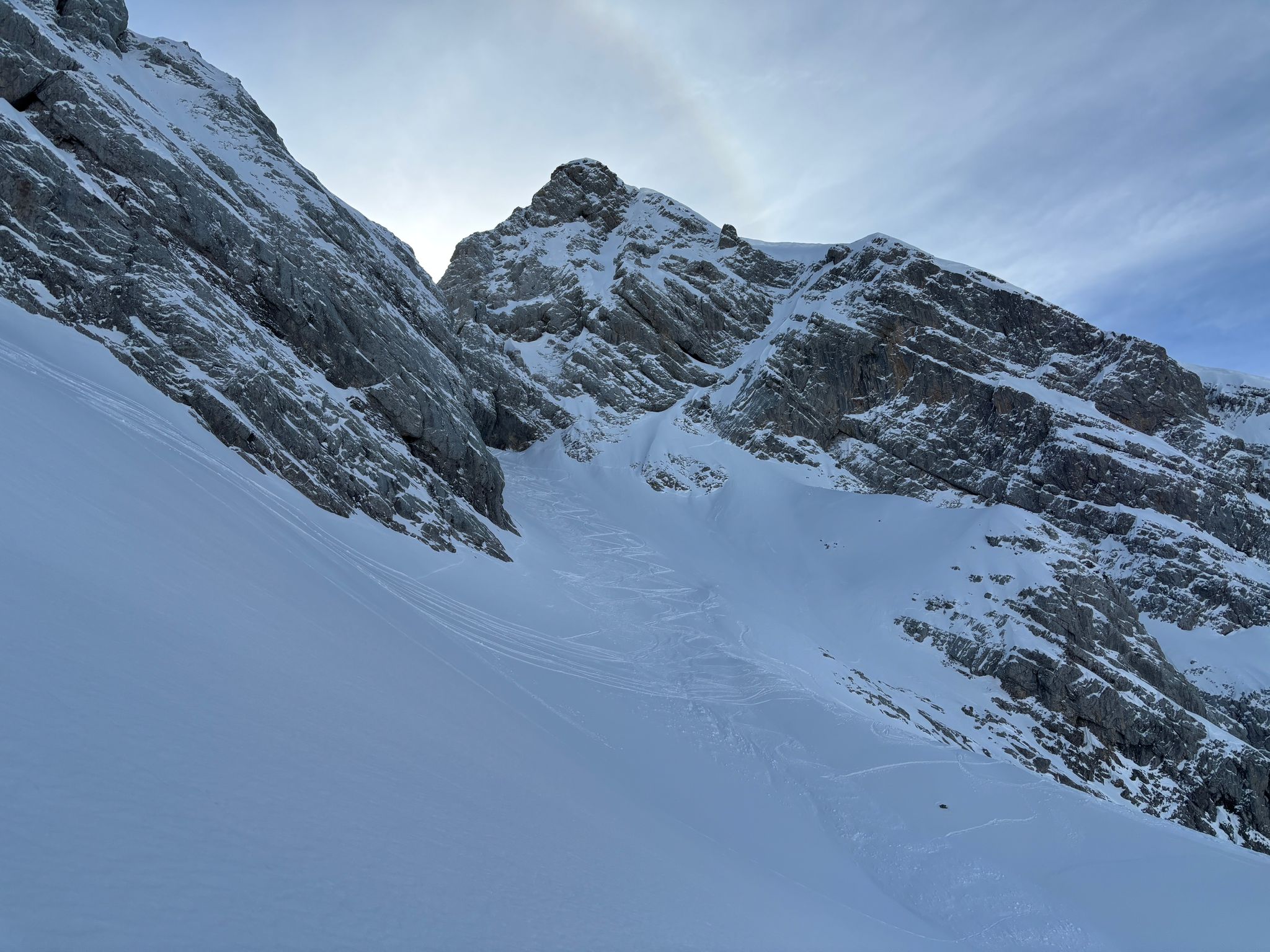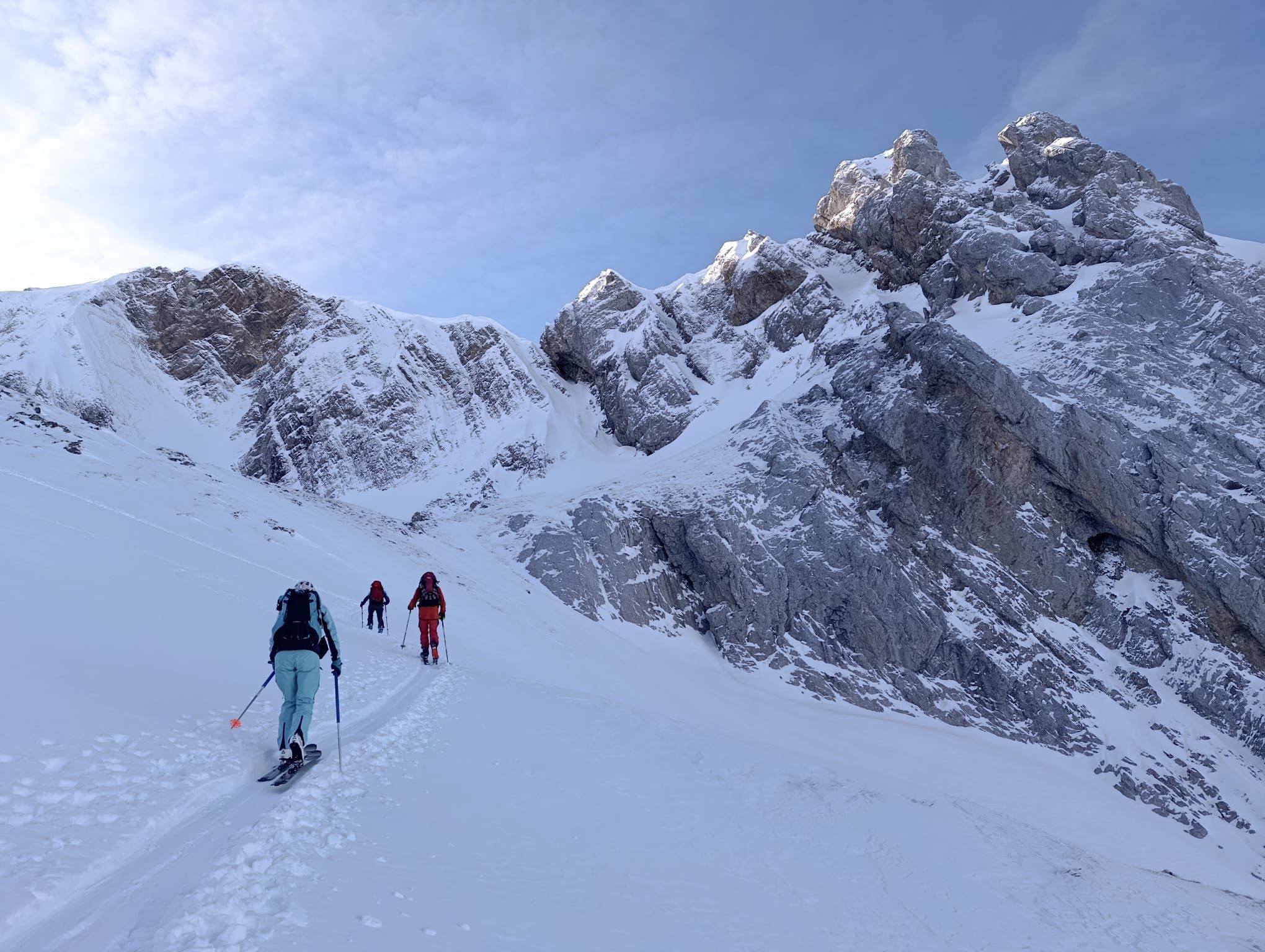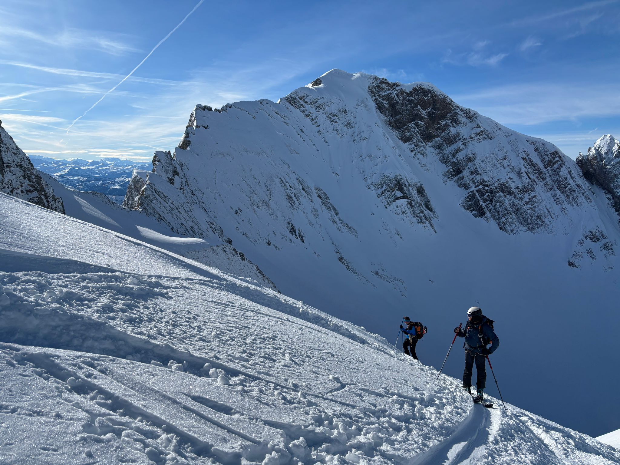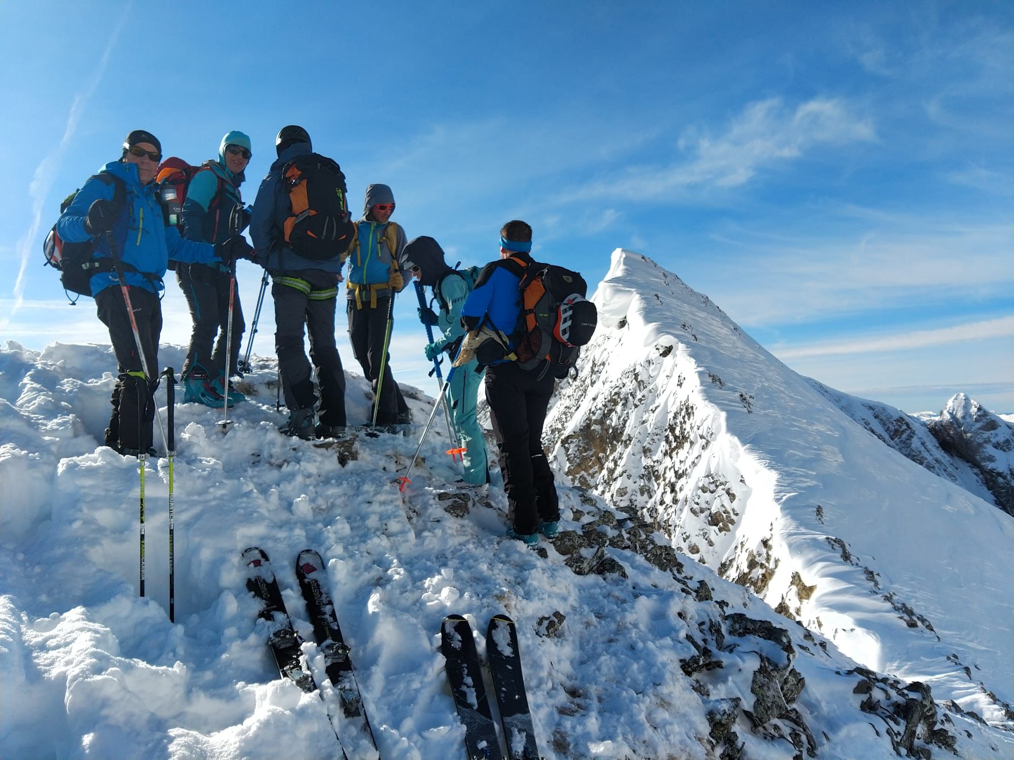 J2 : deux combes au programme avant de redescendre au grand Bornand. Nous débutons notre course par une descente dans la magnifique poudreuse, direction le bas de la combe de chombas. Nous y déposons quelques affaires pour s'alléger. Direction la combe de Charvet, très sauvage avec une belle neige de cinéma ! Panorama magnifique avec vue jusqu'aux Ecrins. Puis retour dans la combe de Chombas et montée dans un petit couloir qui nous offre un panorma exceptionnel. Descente délicieuse jusqu'à ce que l'on reprenne nos affaires. Dernière descente "sanglier"dans un canyon qui aura eu raison de nos cuisses...Retour à l'auberge nordique, puis bus jusqu'au grand Bornand et remontée en télecabine avec le forfait randonneur jsqu'au chinaillon. De bons et beaux souvenirs dans les Aravis, où d'autres combent restent encore à visiter...